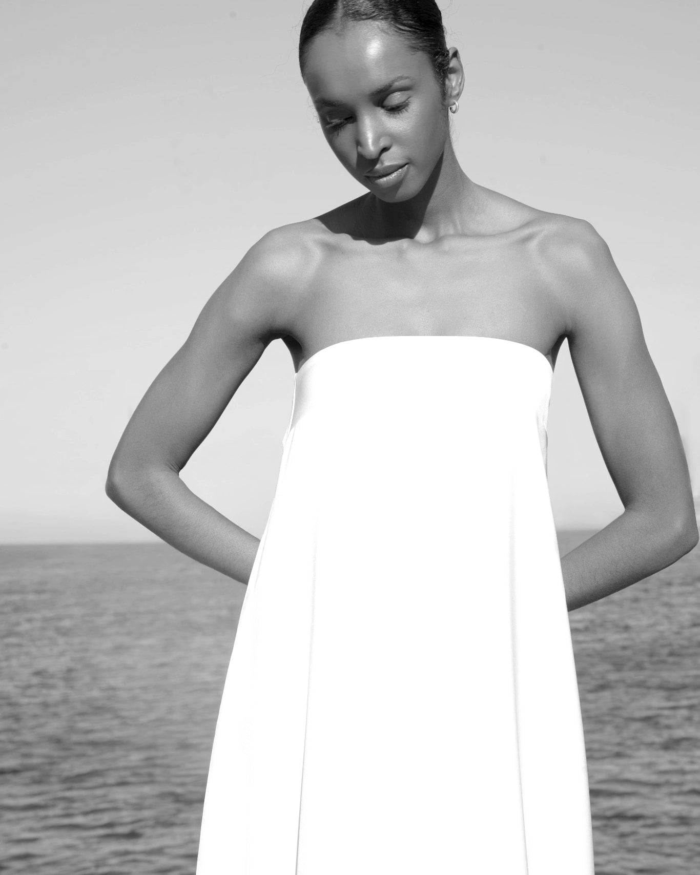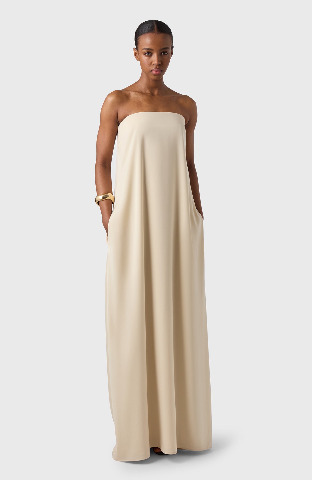 The Eveningwear collection features elegant dresses, bottoms, tops and singlets in satin and silk, in various dark and light hues.