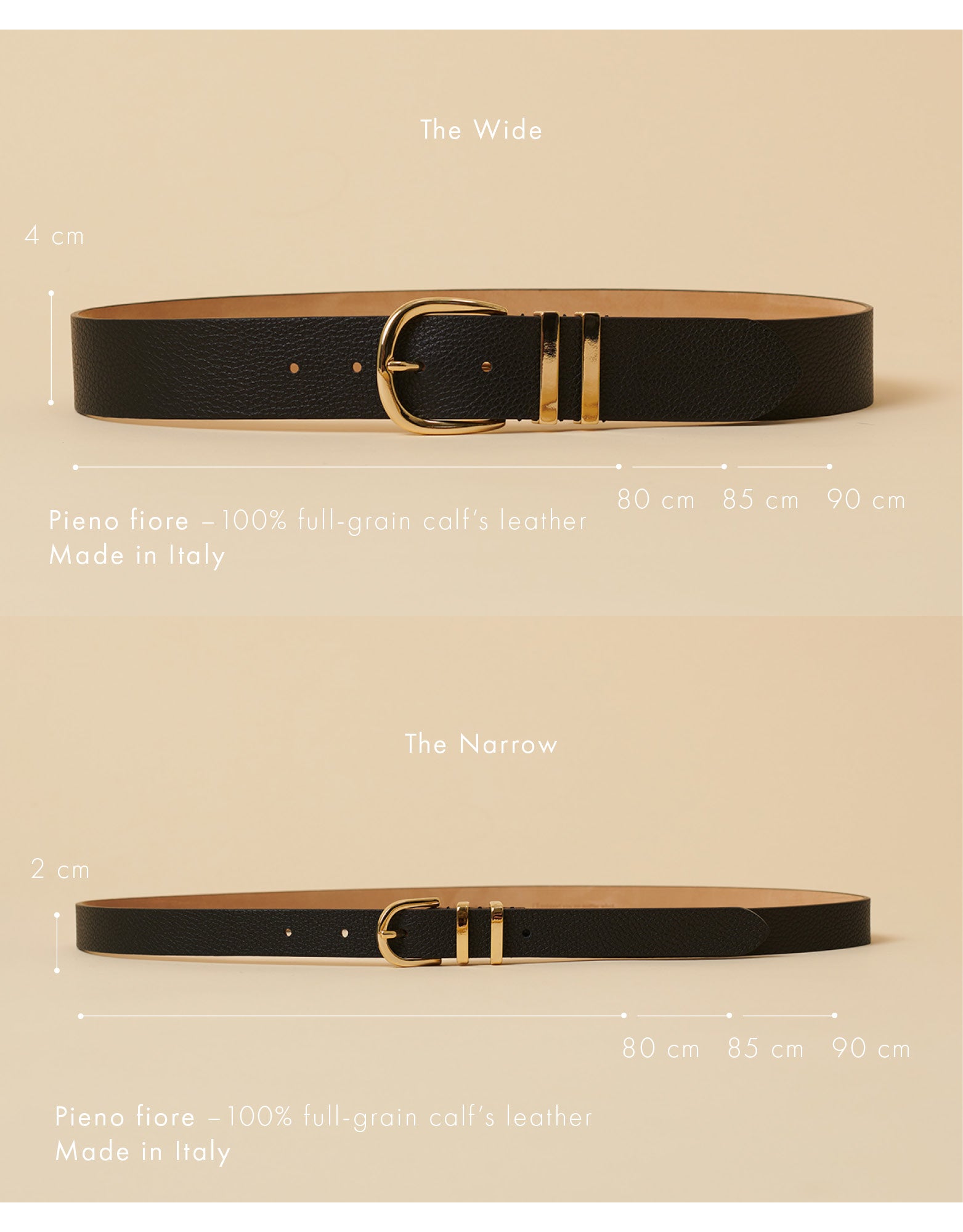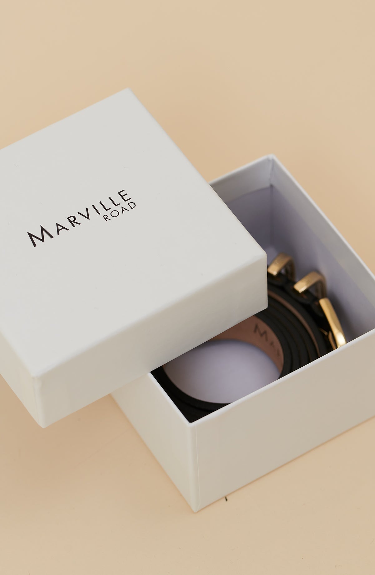Unsere klassischen Gürtel gibt es in zwei Formen, breit und schmal, und in zwei verschiedenen Farben – Schwarz und Cognac. Die klassische Schnalle und das hochwertige Leder bieten endlose Styling-Möglichkeiten, unabhängig von der Jahreszeit oder aktuellen Trends. Ein echter Begleiter – im Leben und für Ihr Outfit – den unsere Marville Frau für immer schätzen wird!
