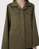 The Riley Cotton Army Jacket is crafted from soft, durable cotton, offering a fitted, slightly longer design with wider sleeves and a clean silhouette. Balancing structure and ease, it is a refined outer layer designed to move effortlessly through your day.