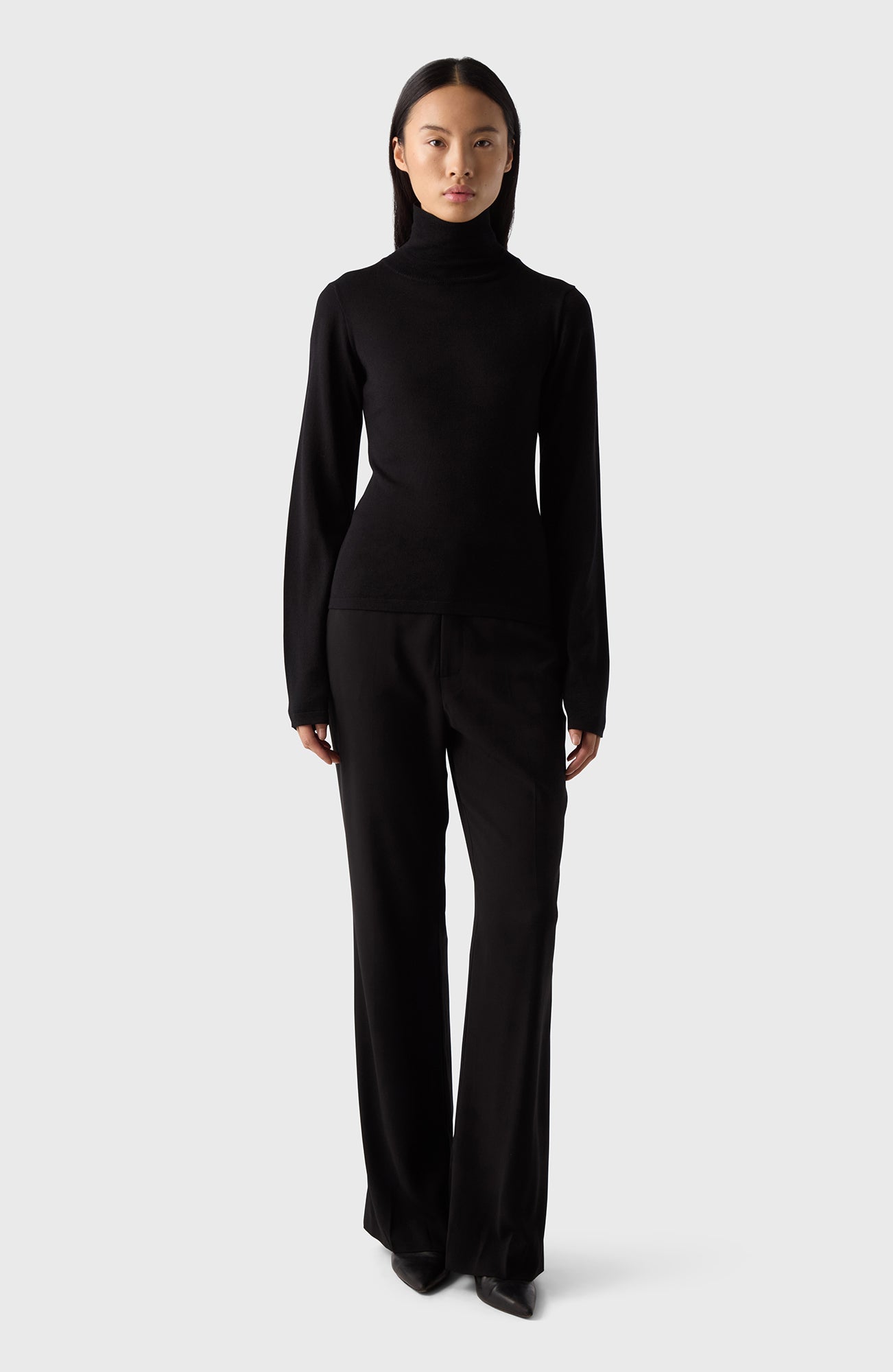 The Turtleneck comes in black and has a slim fit. It's crafted from 100% super soft merino wool, offering both warmth and comfort. Wear it with tailored trousers to dress up or denim to dress down.