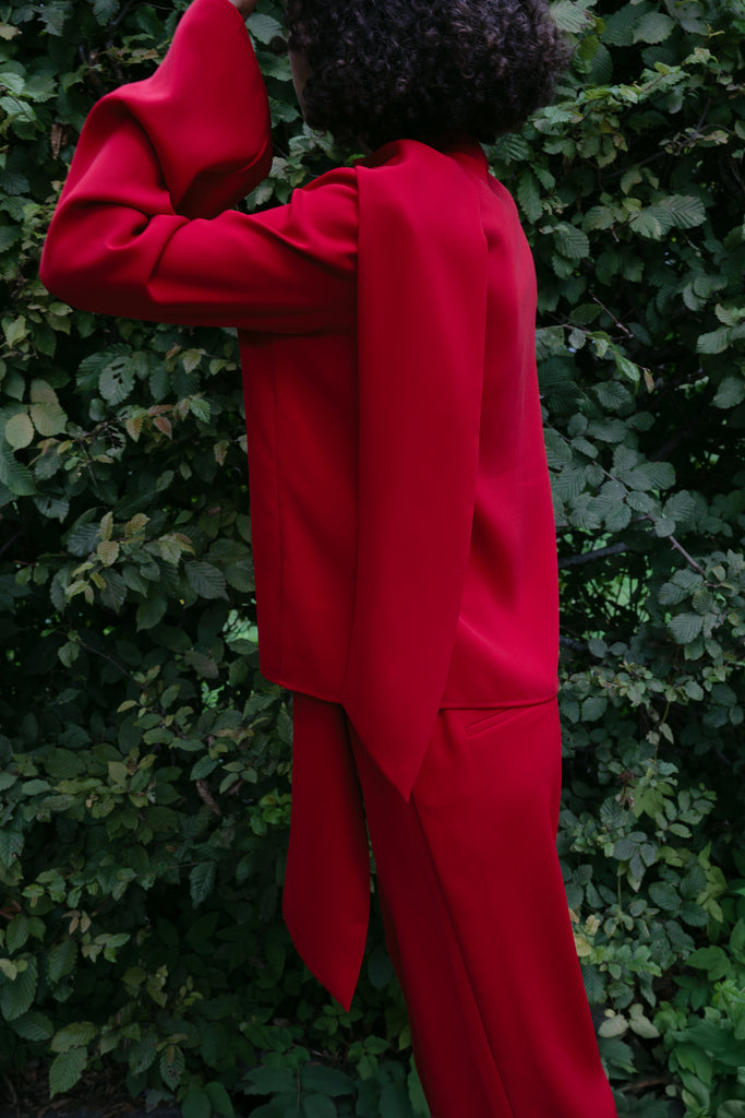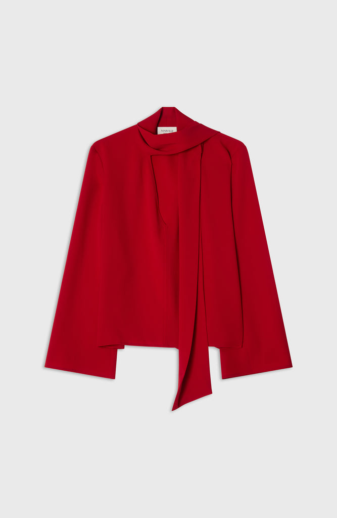 Effortless elegance with a twist. The Renée Blouse is made from soft poly twill and features long sleeves, a fluid drape and a generous shawl collar that can be styled in multiple ways. Tie it as a bow, let it fall freely, or wrap it around — it adapts to your day.