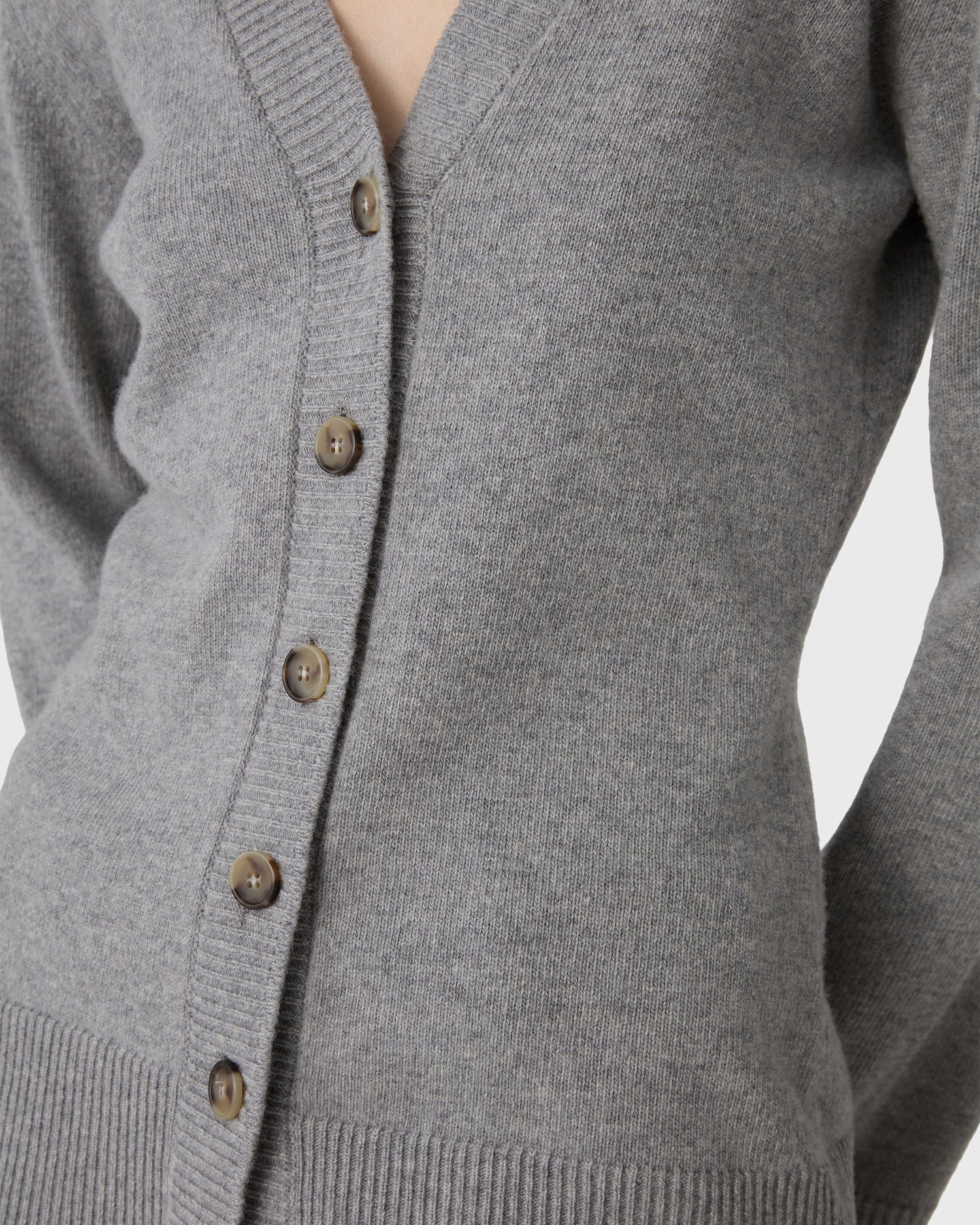 Soft and feminine. The Yara Cardigan is a V-neck cardigan in 100% merino wool, designed with a gently shaped waist, horn buttons and slightly wider sleeves.