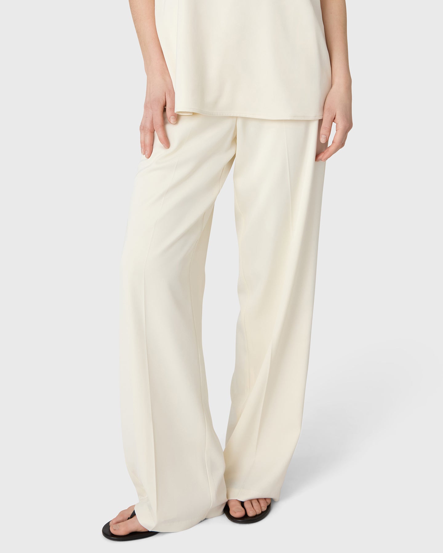 The Ingrid Satin Trousers are cut with wide legs, a mid rise waist and a front zip for a clean silhouette. Satin stretch adds a soft, fluid drape that works equally well in polished and more relaxed settings.
