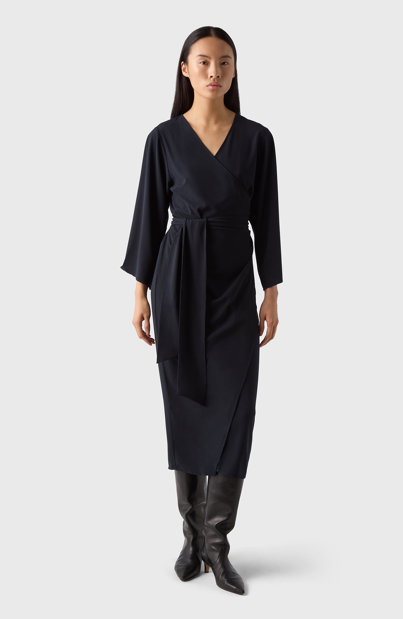 Mira Wrap Dress will be the most wearable piece in your wardrobe. With its open collar, wide sleeves, and wrap fit, Mira will empower and enhance your curves in a perfect way. A perfect all-year-around dress, wear with flat sandals or heels depending on the occasion. Designed for a neat fit.