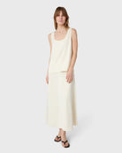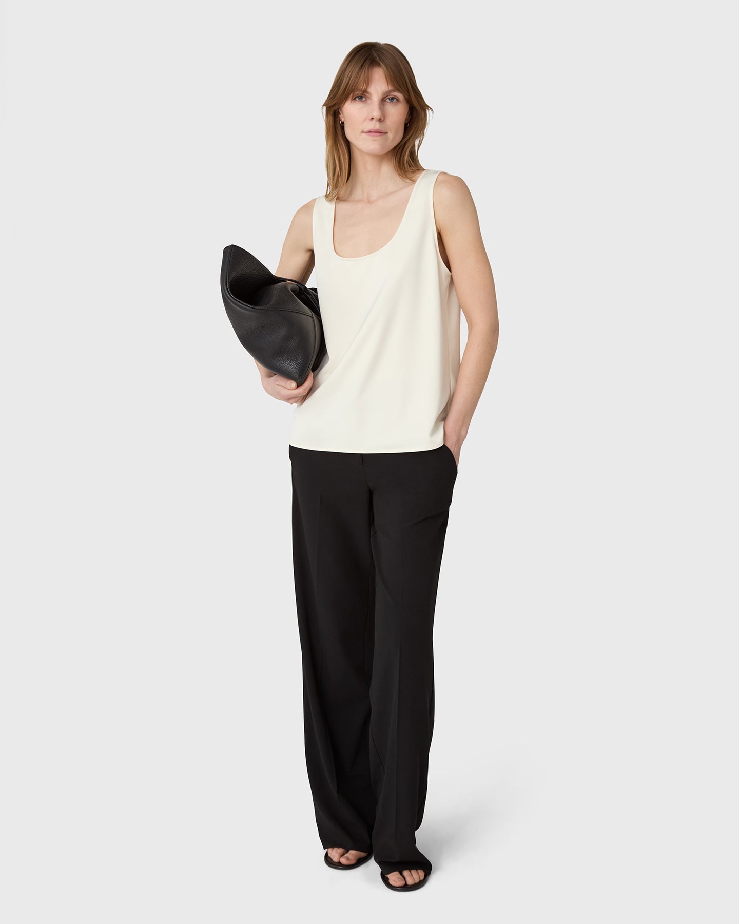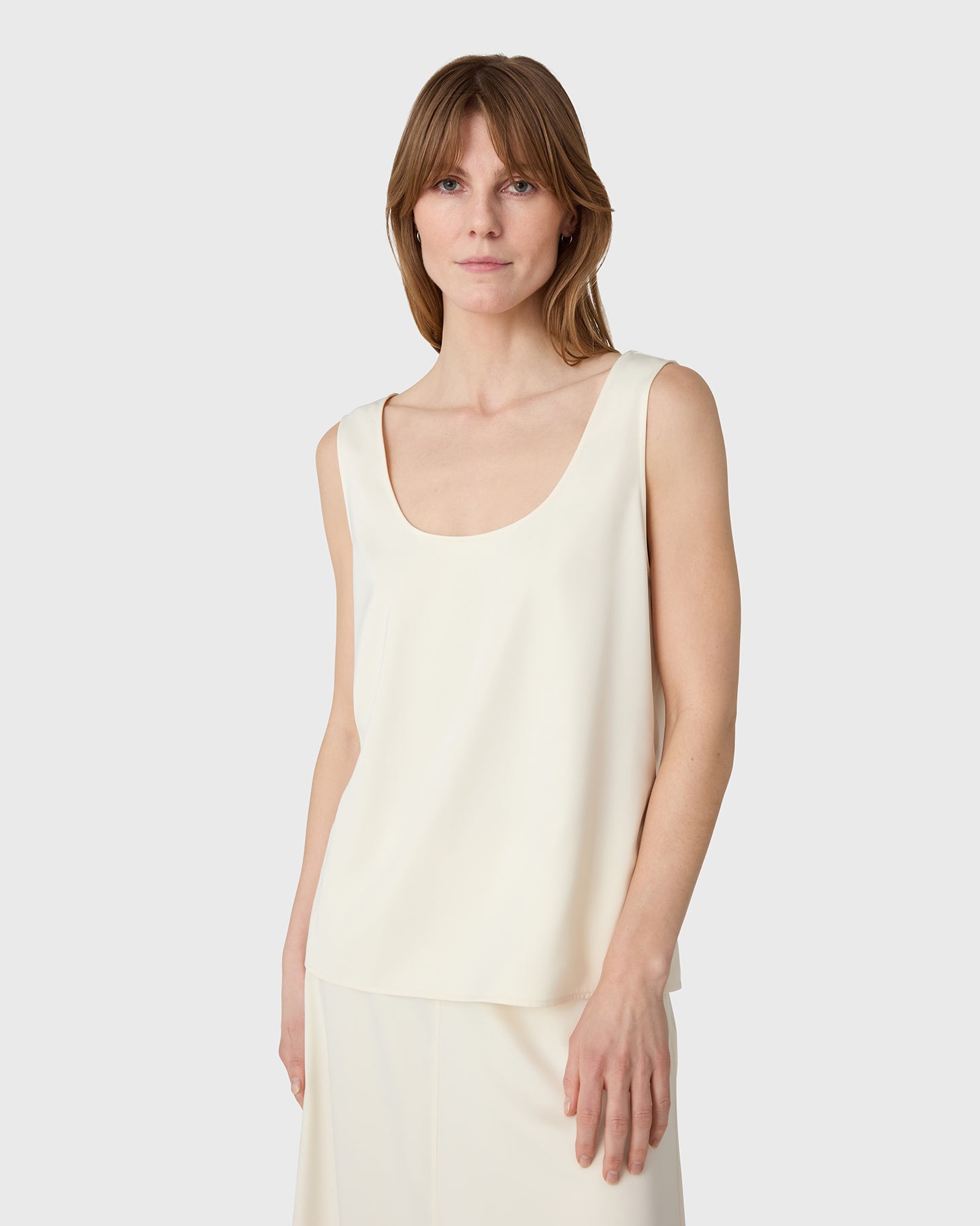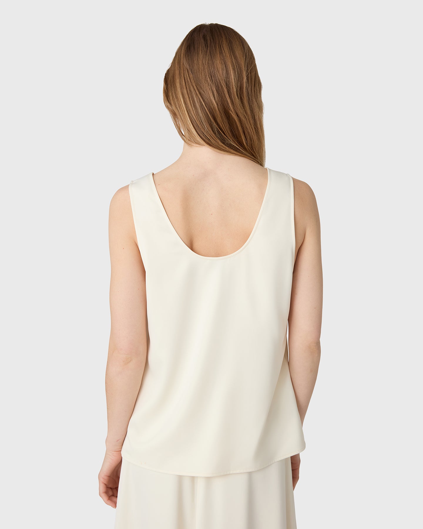 The Scala Satin Tank Top is a round-neck, sleeveless tank top in satin stretch. Designed with a timeless silhouette and a smooth, fluid feel, it’s a refined wardrobe staple that works effortlessly from day to evening.