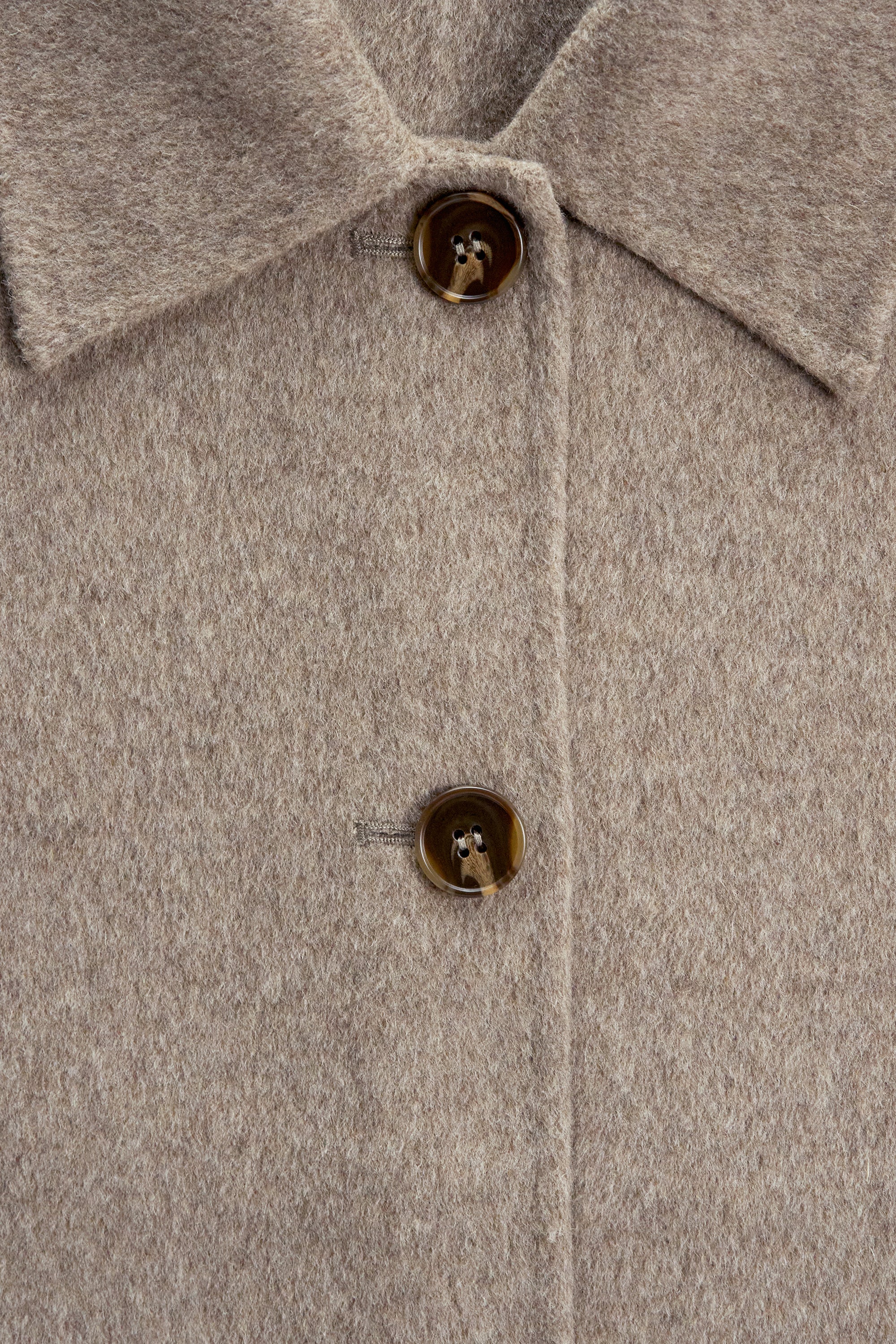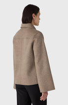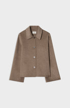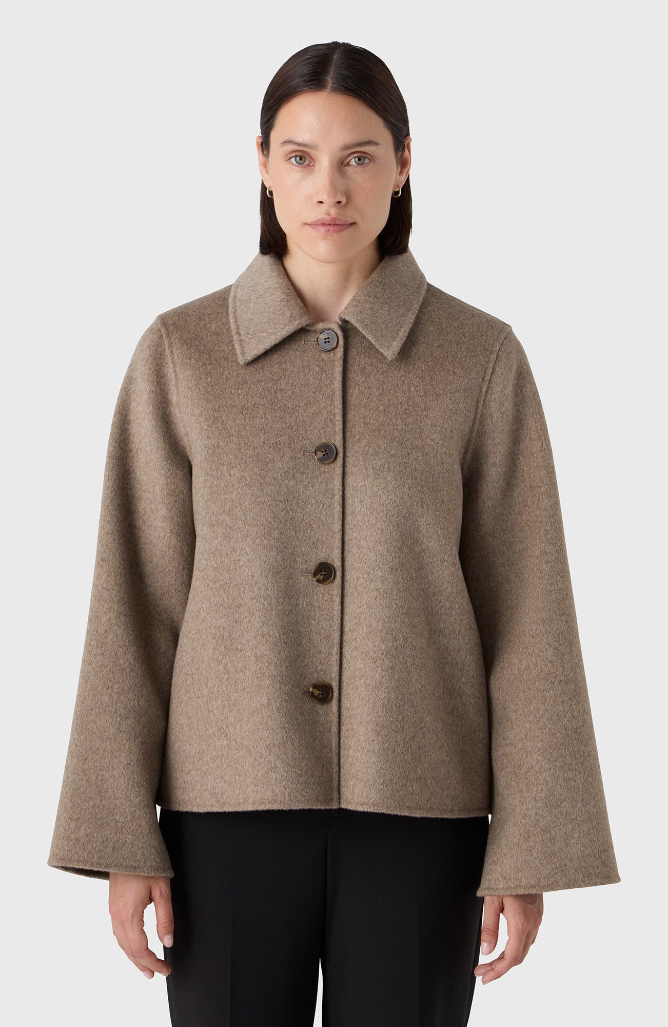 Mjuk form med djärva linjer. The Coline jackan är i 100% ull med en skulptural form med vida ärmar, en skjortkrage och hornknappar. Den korta längden balanserar volym och passar med vilken outfit som helst..