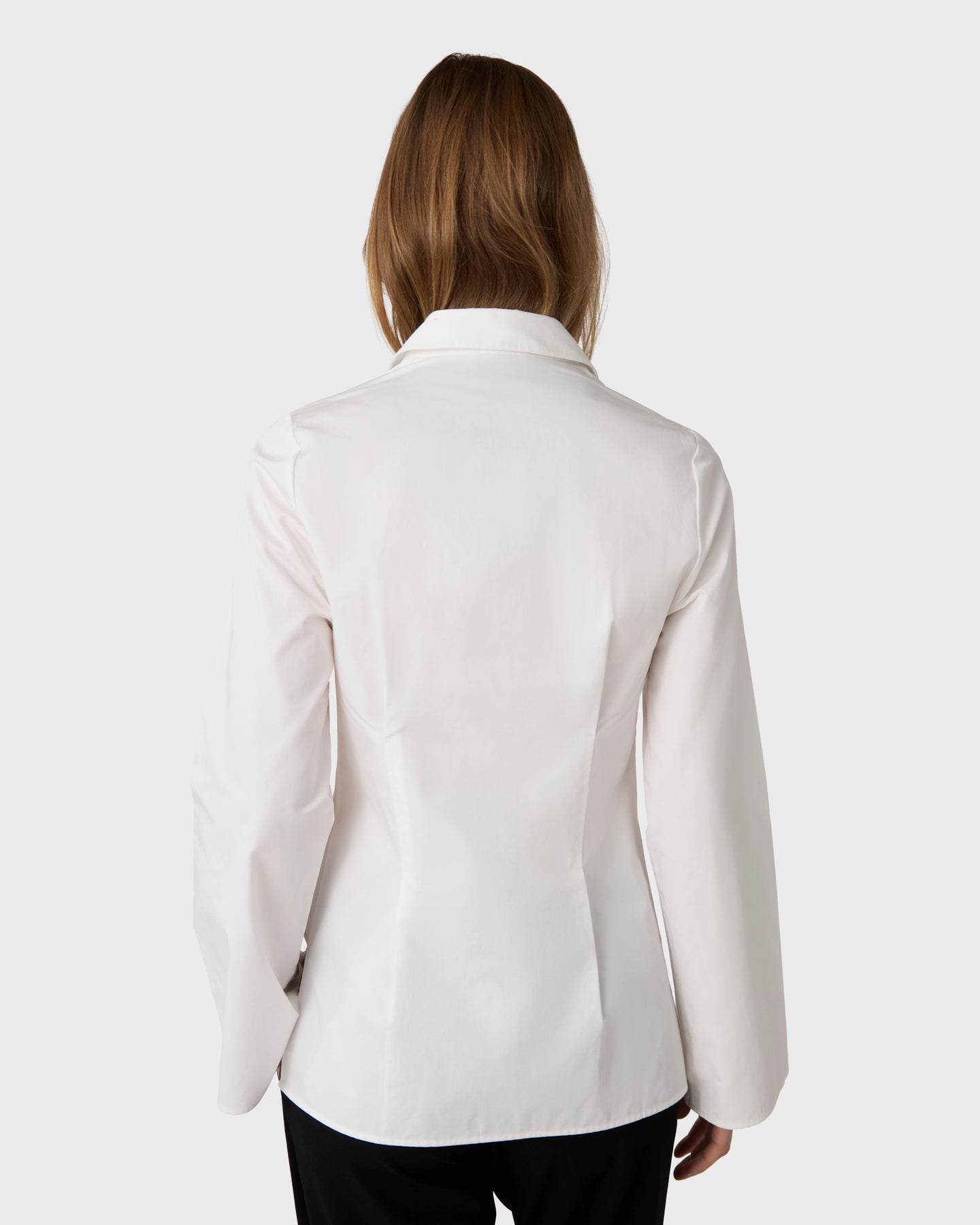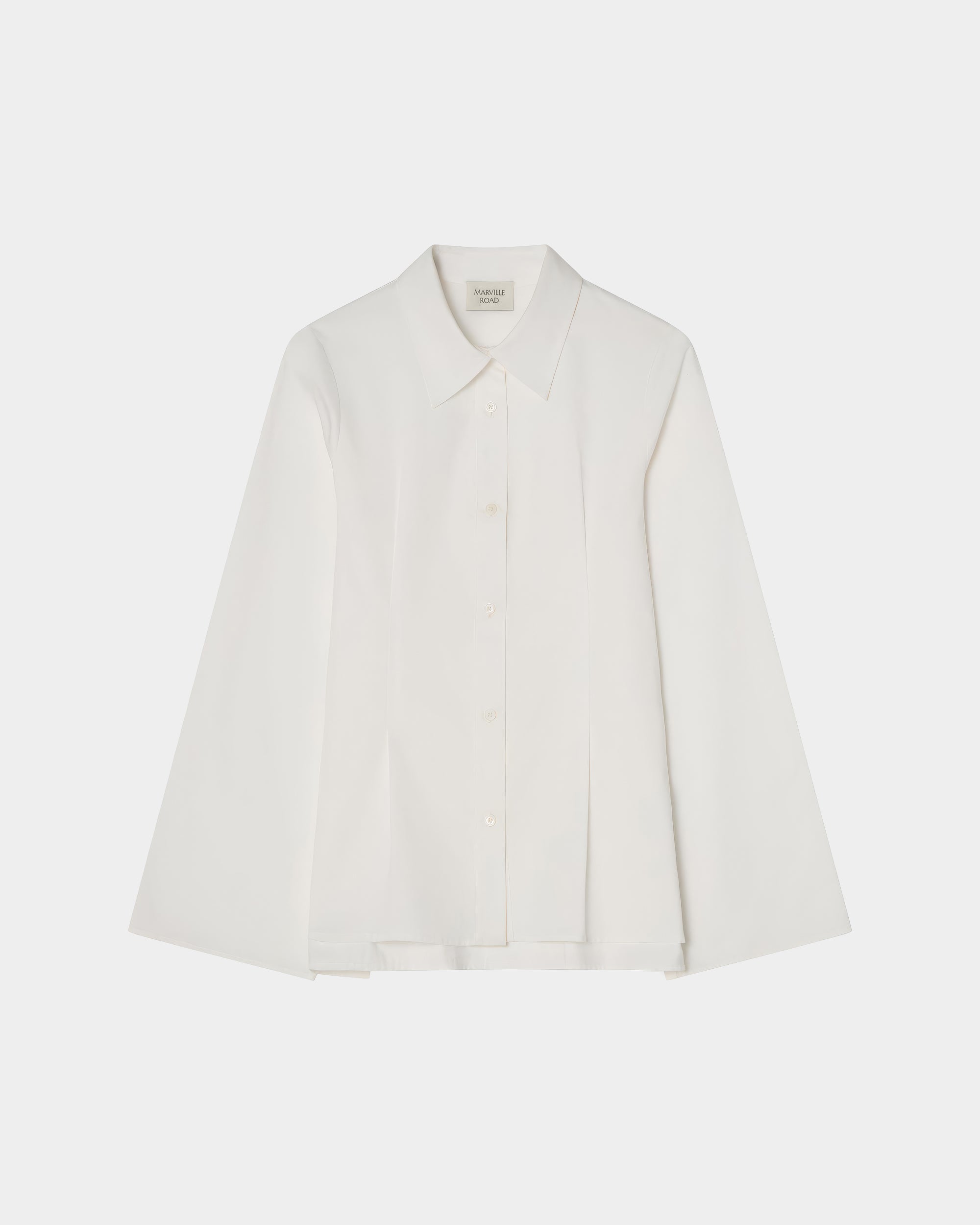 Aurelie bomullsskjorta är en figurnära bomullsskjorta med vida ärmar, som skapar en tidlös, feminin, silhuett. Bär den ensam eller tillsammans med skräddarsydda plagg.