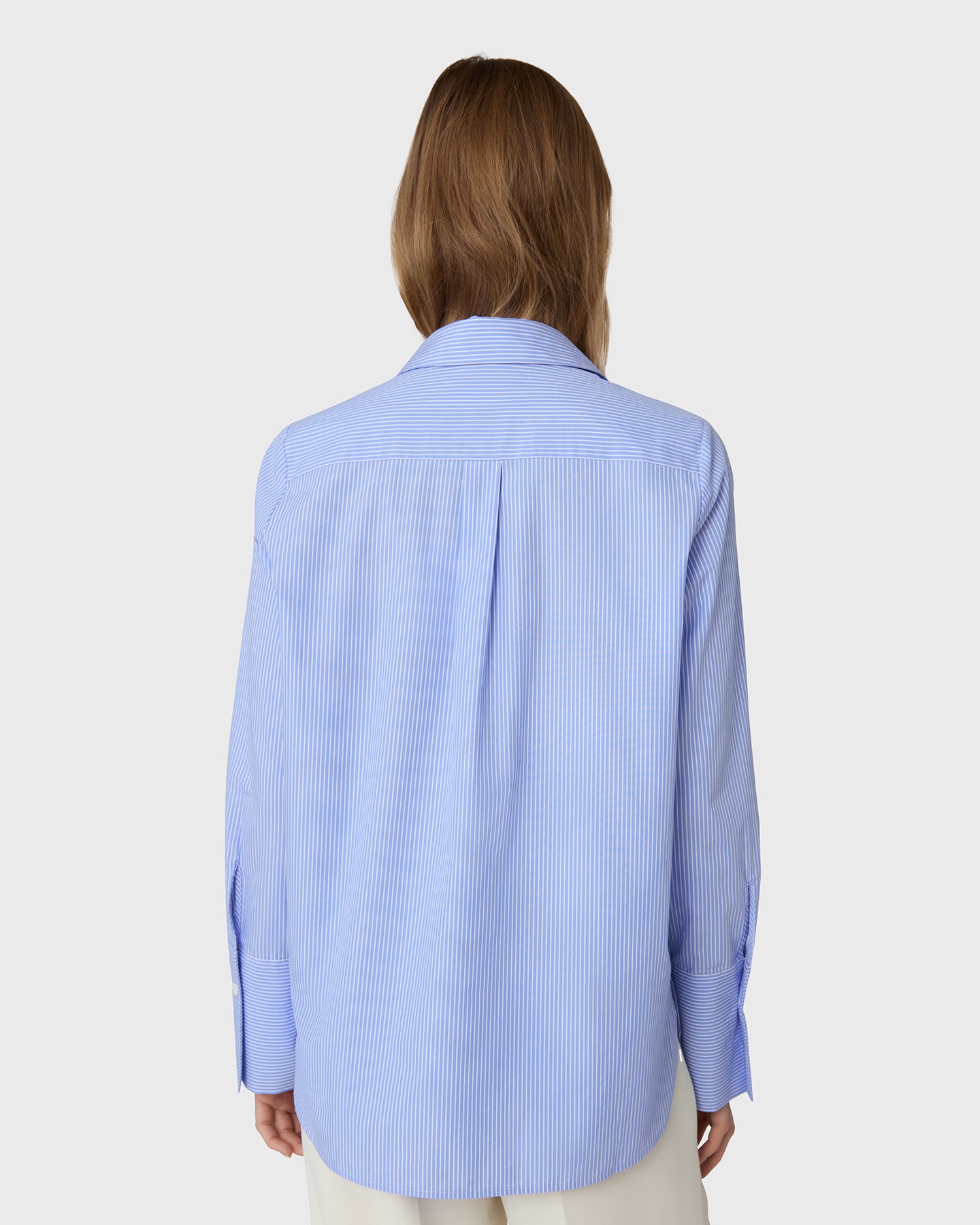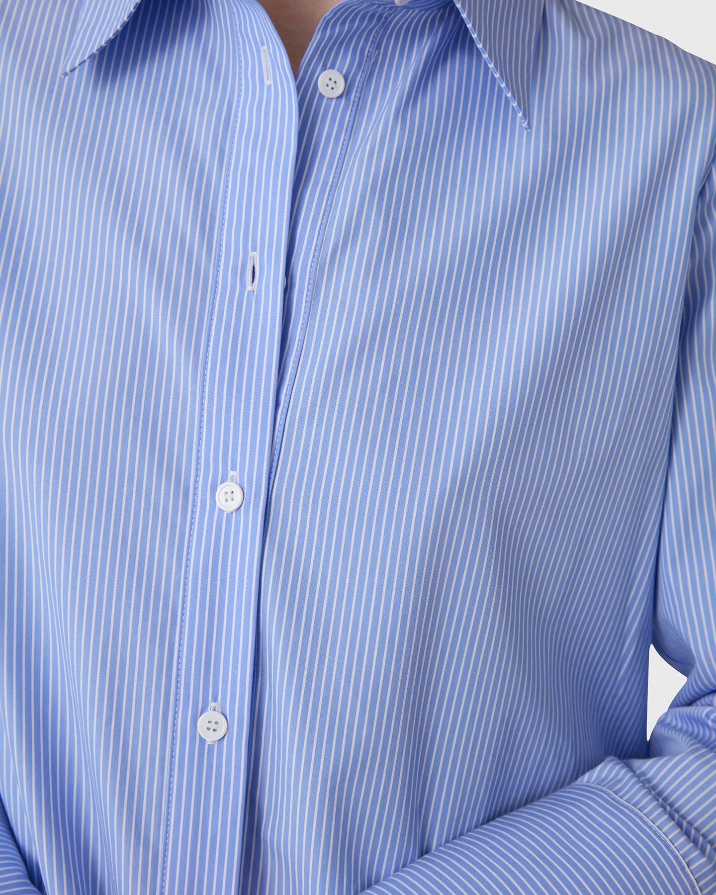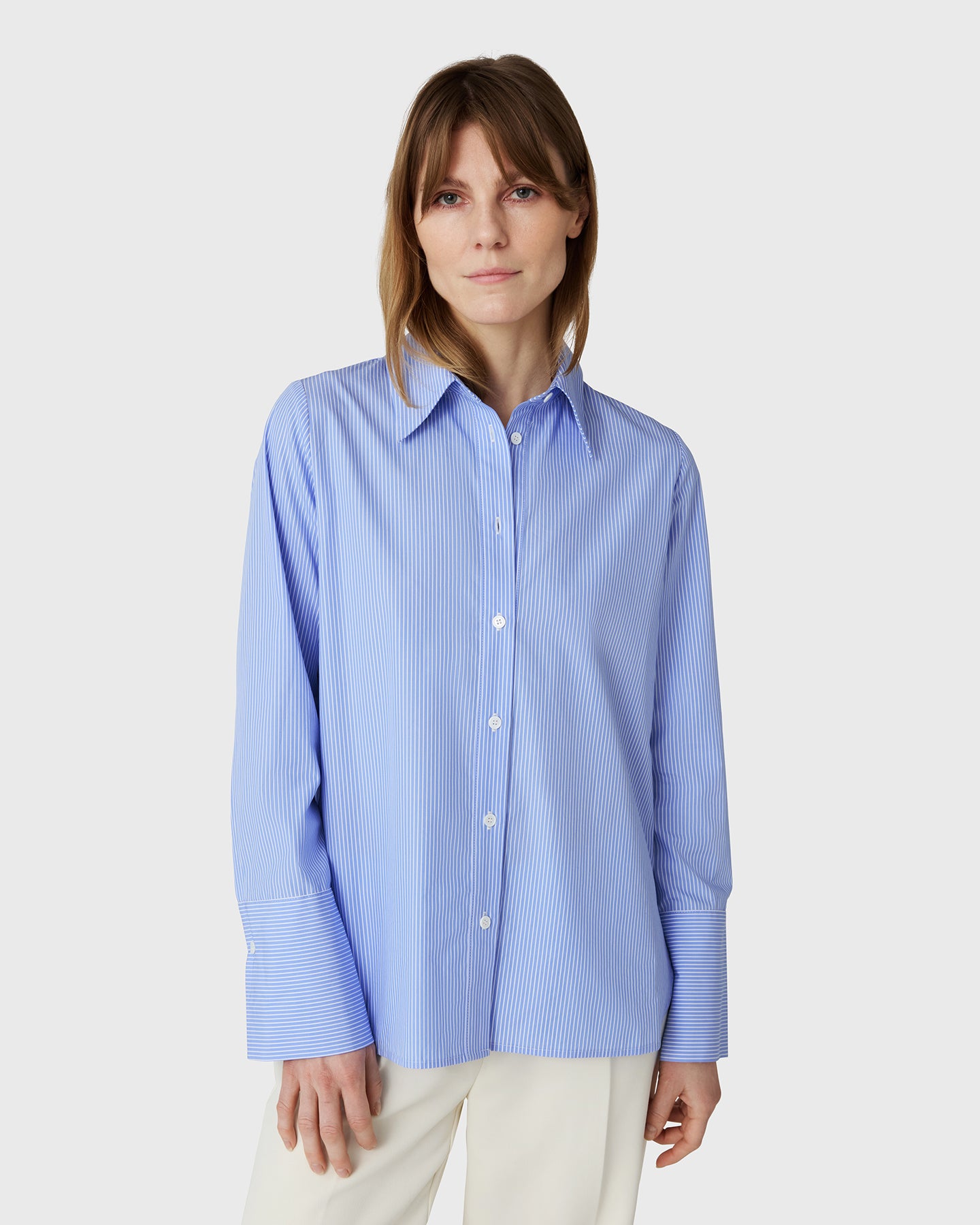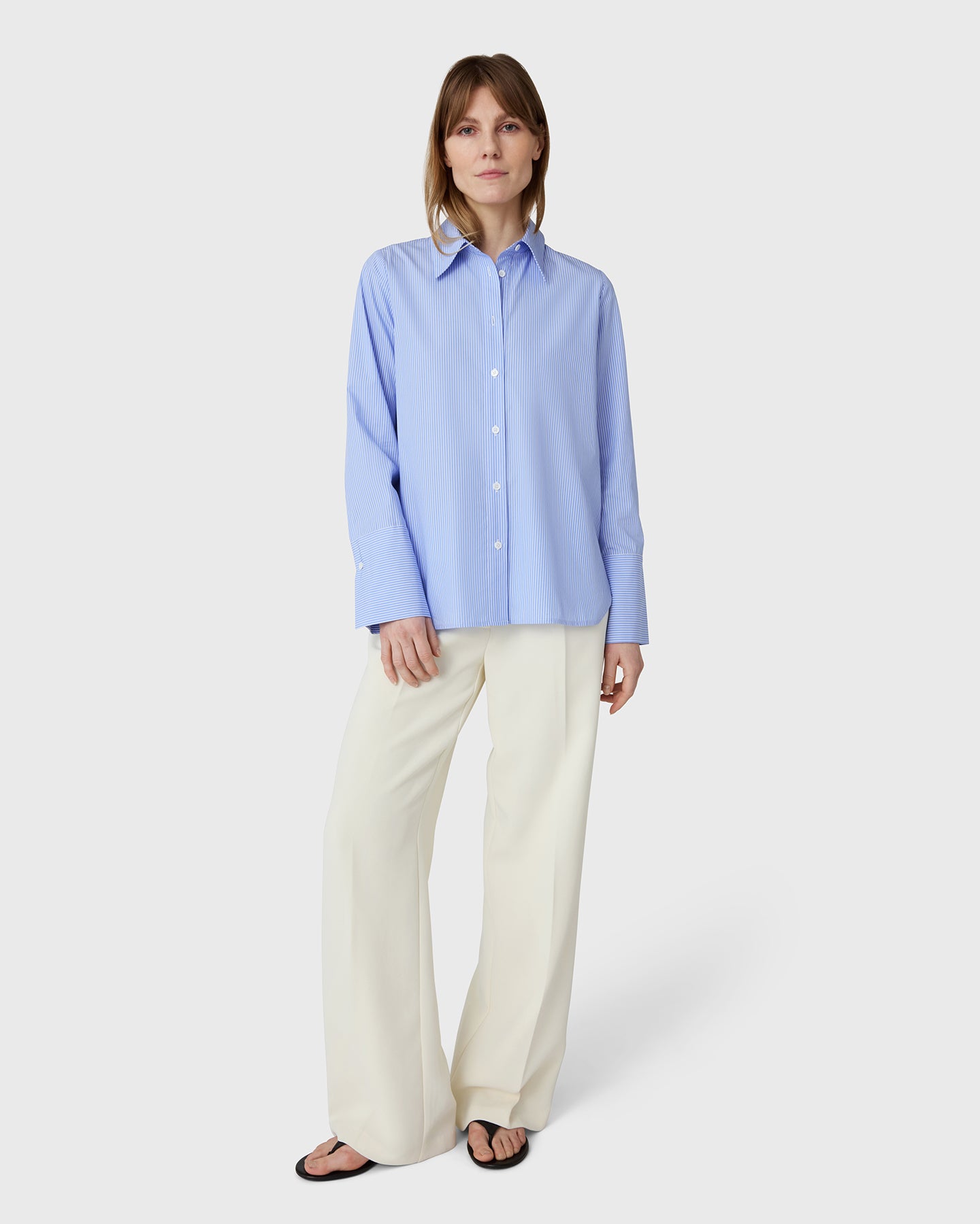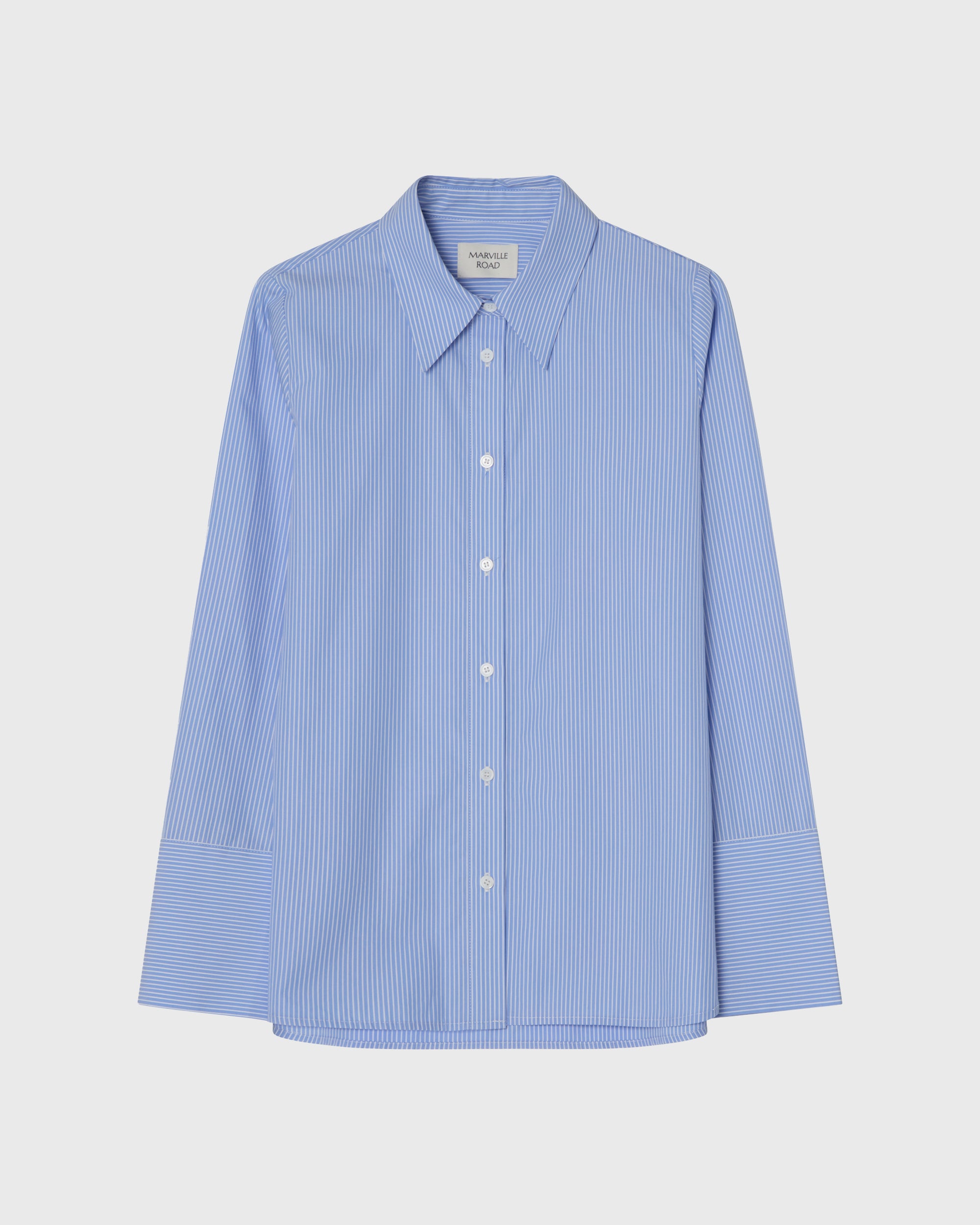 The Oprah skjortan är en bomullsskjorta med en avslappnad, något oversized passform och en längre bakre fåll. Ett tidlöst och förhöjt garderobsplagg.
