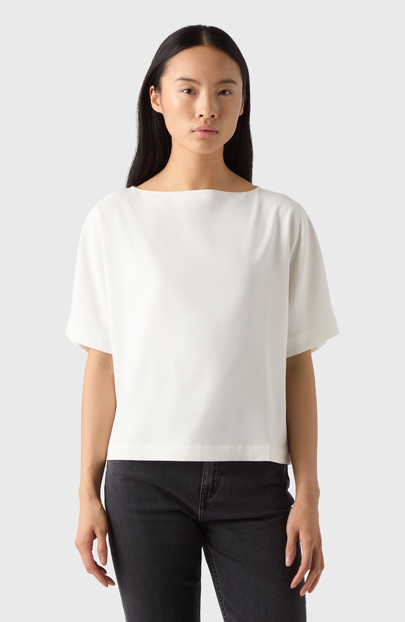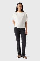 Ava är verkligen en topp för alla tillfällen som passar alla kroppstyper. Med en lätt båtkrage och vida ärmar som slutar precis ovanför armbågen har den en mycket smickrande passform. Tillverkad i vår stretchcrêpe som är maskintvättbar och skrynkelfri kommer denna topp verkligen att bli ett kapselplagg i din garderob oavsett säsong.