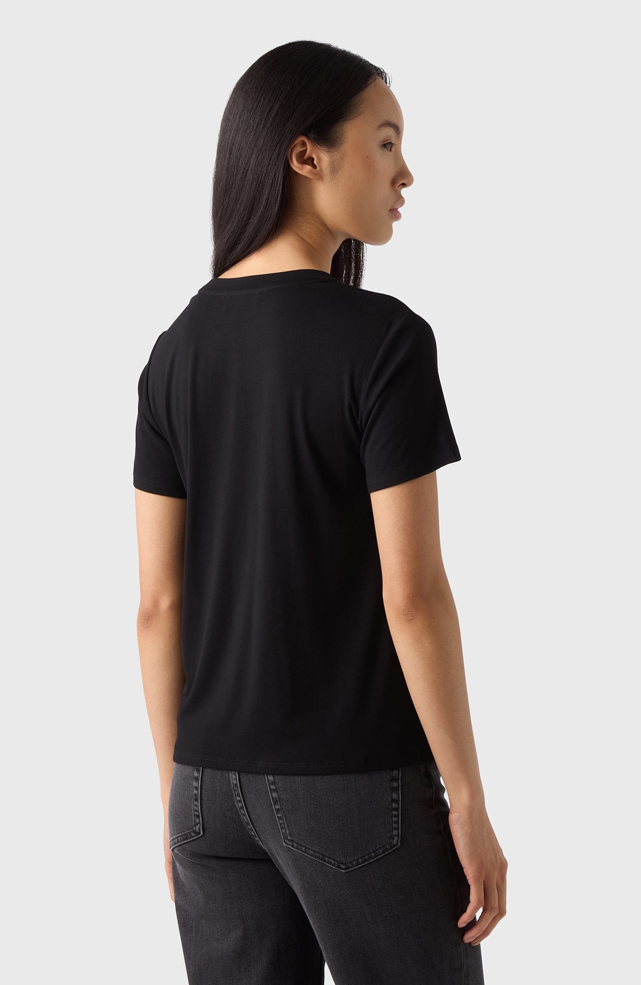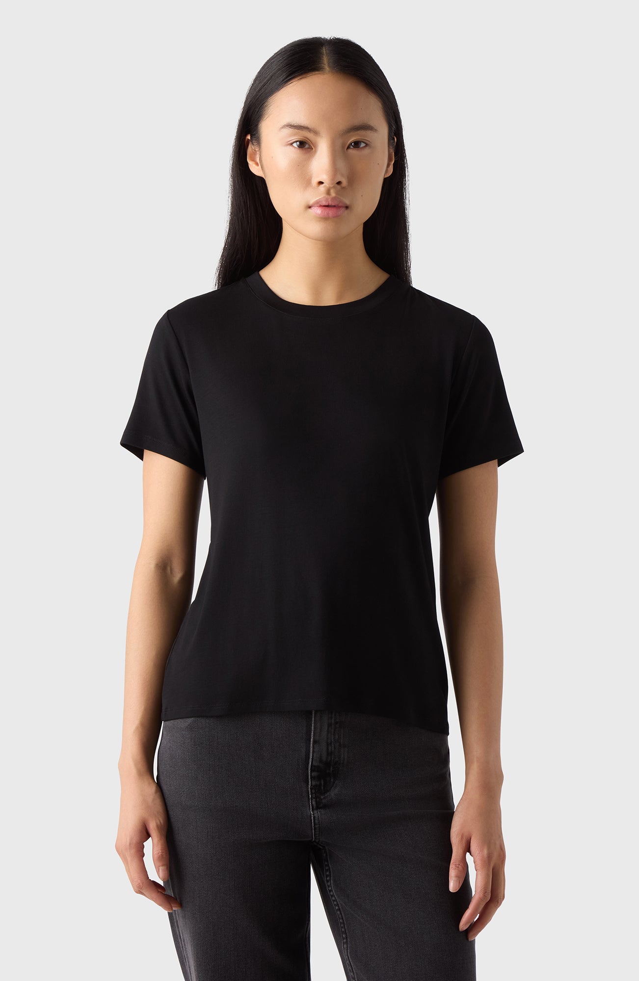 Tillverkad av ett exceptionellt mjukt viskosjersey, ett hållbart framställt tyg känt för sin andningsförmåga och komfort. Designad för att hålla i åratal, har den en smickrande rund halsringning och en avslappnad passform.