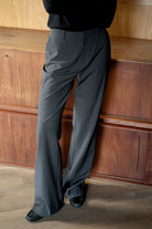 En modern tolkning av skräddarsytt. Elle-byxorna är skurna i maskintvättbar ullstretch med hög midja, dragkedja framtill och rena sidofickor. Den lätt utsvängda benformen skapar en lång, elegant silhuett — idealisk med klackar eller ett snyggt platt par.