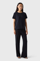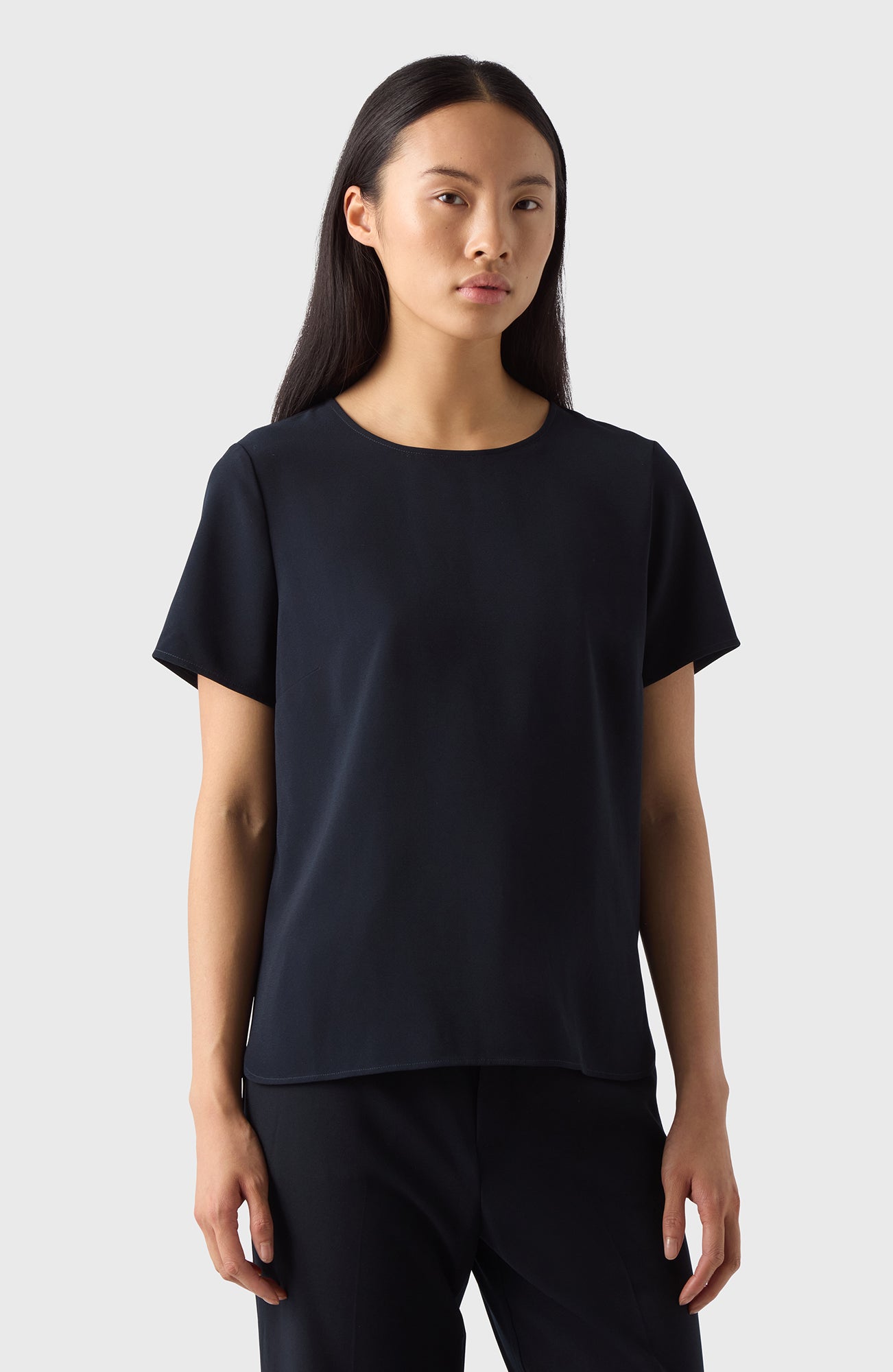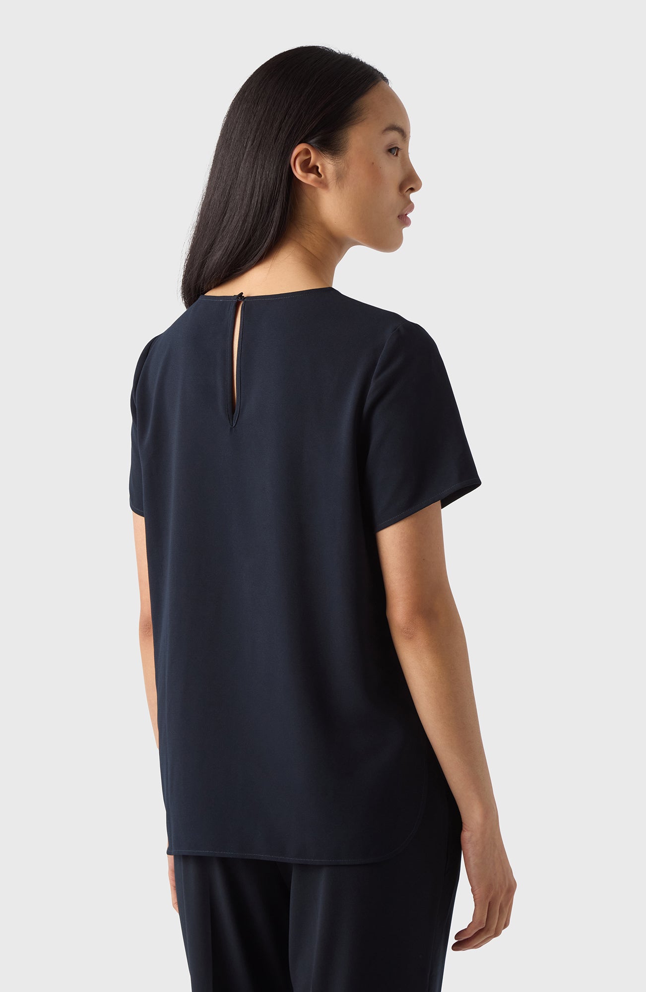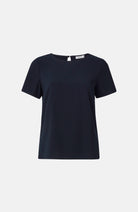 Olga-toppen kan beskrivas som en ”blus-t-shirt” – den är mer elegant än en vanlig T-shirt men enklare än en klassisk blus. Enkel men stilren, den ger det där lilla extra till din vardagslook. Olga är designad för en något lös passform och har en rund halsringning som stängs med en knapp täckt av tyg.